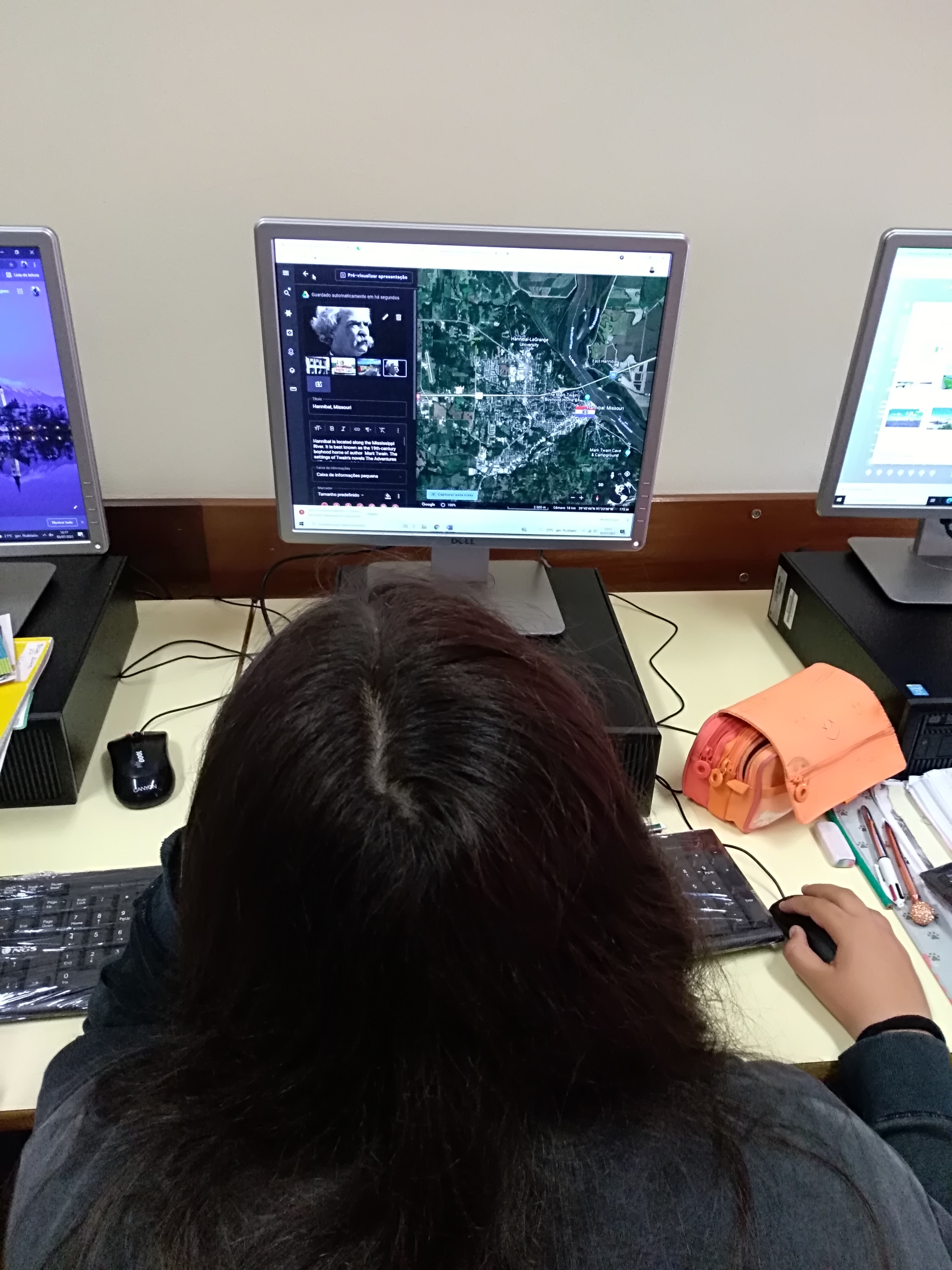 Οι μαθητές/τριες ακούνε και διαβάζουν μια διασκευασμένη έκδοση του βιβλίου: Οι περιπέτειες του Τομ Σόγιερ, του Μαρκ Τουέιν στο σχολικό τους βιβλίο. Διαβάζουν δυνατά και μαθαίνουν νέο λεξιλόγιο στα αγγλικά και μεταφράζουν κάποιες λέξεις/εκφράσεις, χρησιμοποιώντας τον μεταφραστή DeepL, σε εργασία σε ζευγάρια. Αφού διαβάσουν και μεταφράσουν κάθε κεφάλαιο, παρακολουθούν ένα βίντεο στο ψηφιακό σχολικό τους βιβλίο και απαντούν στις ερωτήσεις του βιβλίου τους. Οι μαθητές/τριες παίζουν ένα παιχνίδι kahoot για το βιβλίο και δημιουργούν ένα έργο στο Google Earth: Η διαδρομή του ποταμού Μισισιπή. Παρουσιάζουν το έργο τους στην τάξη.