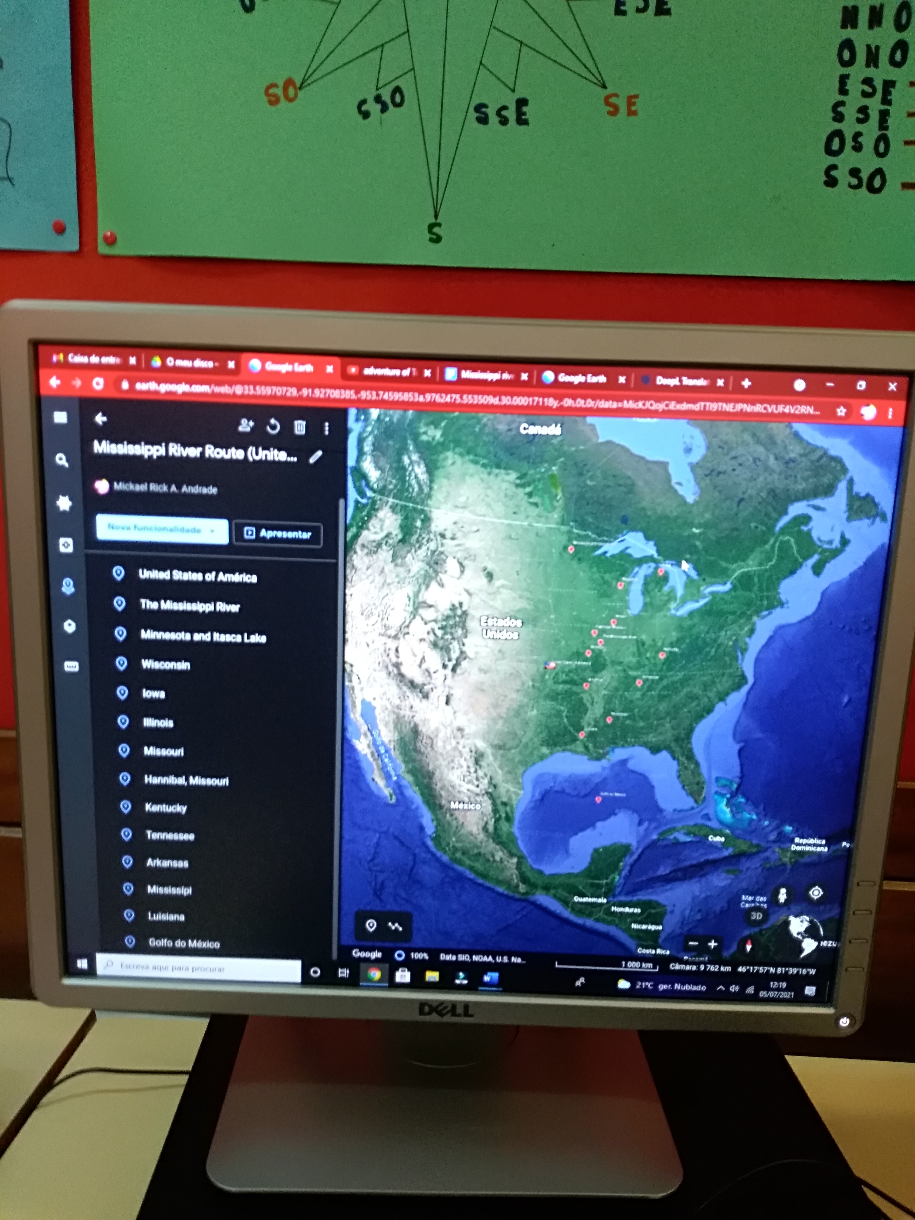 Οι μαθητές/τριες αναζητούν διαδικτυακά πληροφορίες για τον συγγραφέα του βιβλίου, Μαρκ Τουέιν. Παρακολουθούν το τρέιλερ της ταινίας: Οι περιπέτειες του Τομ Σόγιερ. Ακούνε και διαβάζουν δυνατά κάθε κεφάλαιο της προσαρμοσμένης έκδοσης του βιβλίου. Μεταφράζουν νέες λέξεις/εκφράσεις, χρησιμοποιώντας τον μεταφραστή DeepL, σε εργασία σε ζευγάρια. Παρακολουθούν ένα βίντεο από κάθε κεφάλαιο στο ψηφιακό σχολικό τους βιβλίο και απαντούν στις ερωτήσεις του βιβλίου τους. Κάνουν μια σύντομη περίληψη της ιστορίας και παίζουν ένα παιχνίδι kahoot για το βιβλίο (συγγραφέας, πλοκή, κύριοι χαρακτήρες). Ο/η εκπαιδευτικός τους διδάσκει πώς να χρησιμοποιούν το ψηφιακό εργαλείο - Google Earth- και δημιουργούν το έργο: Η διαδρομή του ποταμού Μισισιπή. Η δράση του βιβλίου λαμβάνει χώρα κοντά στον ποταμό Μισισιπή, στο Hannibal, μια μικρή πόλη στην πολιτεία του Μιζούρι (ΗΠΑ). Ο ποταμός Μισισιπή διασχίζει ή περνά κατά μήκος 10 πολιτείες, από τη Μινεσότα μέχρι τη Λουιζιάνα. Οι μαθητές/τριες δημιουργούν ένα έργο σχετικά με τη διαδρομή του ποταμού Μισισιπή, από τη Μινεσότα (κορυφή) έως τον Κόλπο του Μεξικού (εκβολή ποταμού). Ενώ δημιουργούν αυτό το έργο, ανακαλύπτουν τις δέκα πολιτείες των ΗΠΑ στο Google Earth (Μινεσότα, Ουισκόνσιν, Αϊόβα, Ιλινόις, Μιζούρι, Κεντάκι, Τενεσί, Αρκάνσας, Μισισιπή, Λουιζιάνα) και τον Κόλπο του Μεξικού. Οι μαθητές/τριες αναζητούν πληροφορίες στη Wikipedia για τις δέκα πολιτείες των ΗΠΑ και τον Κόλπο του Μεξικού και τις προσθέτουν στο έργο: όνομα, πρωτεύουσα, σημαία, πληθυσμός, νόμισμα, σύνορα, μνημεία. Χρησιμοποιώντας το Google Earth, επιλέγουν εικόνες Google από αυτά τα μέρη και εικόνες από τις περιπέτειες του Τομ κ.λπ. Οι μαθητές/τριες μοιράζονται το έργο τους μέσω email με τον/την εκσπαιδευτικό και τους/τις συμμαθητές/τριές τους και το παρουσιάζουν στην τάξη.