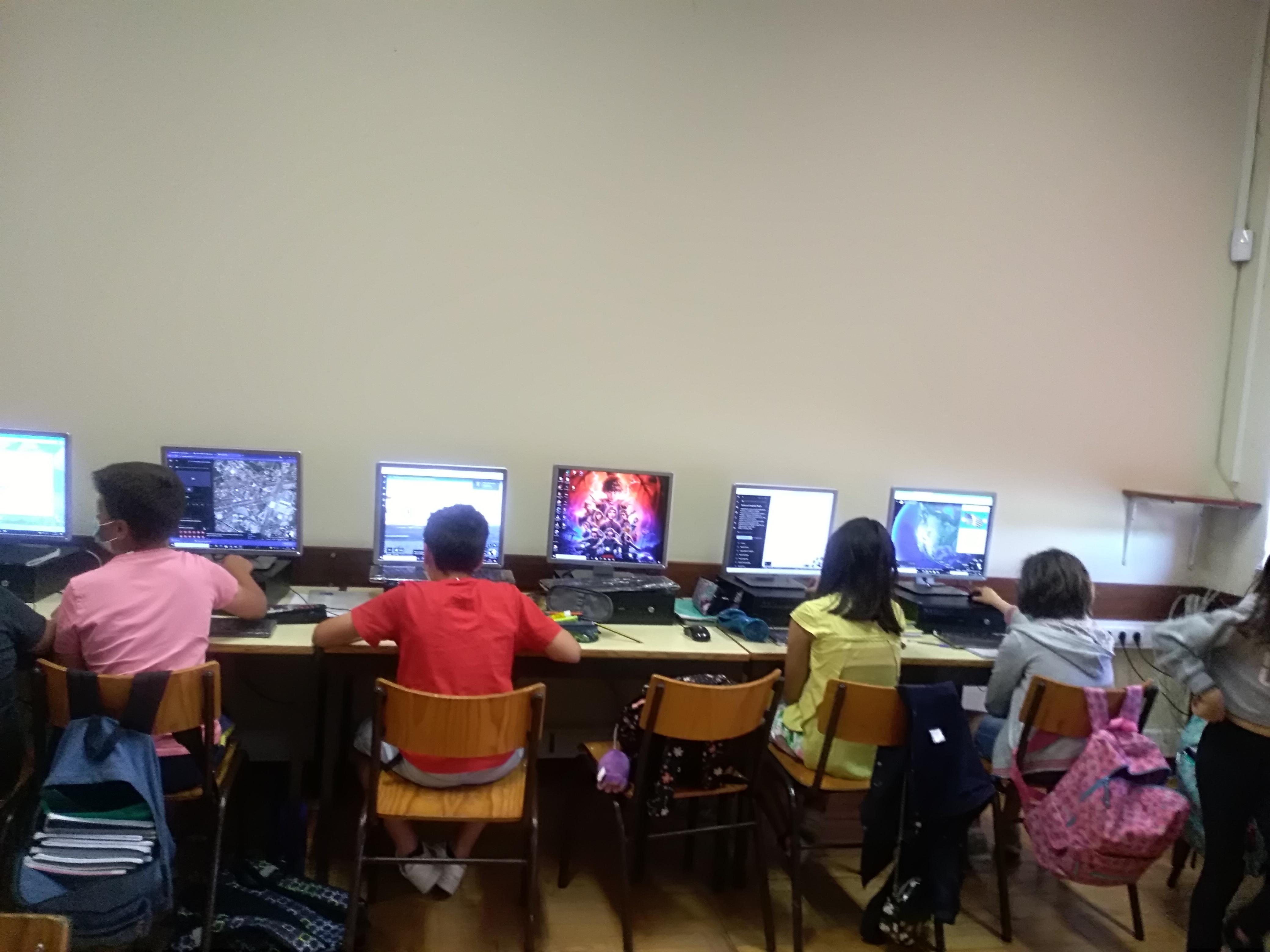 Os alunos procuram informações online sobre o escritor do livro, Roald Dahl. Veem o trailer do filme da Disney: James e o Pêssego Gigante. Ouvem e leem em voz alta a versão adaptada do livro. Traduzem palavras/expressões que não conhecem, usando o tradutor DeepL, em trabalho de pares e respondem às perguntas do manual sobre a ação do conto. Quando terminam as atividades de leitura, fazem um breve resumo da história e realizam um jogo na aplicação kahoot sobre o autor, ação e personagens. A professora ensina-lhes a utilizar a ferramenta digital - google earth - e os alunos criam um projeto no google earth: A Viagem de James e o Pêssego Gigante. Já a trabalharem no projeto, procuram e adicionam os lugares onde James esteve ou passou (Inglaterra: Londres; Oceano Atlântico; EUA: estado de Nova Iorque, cidade de Nova Iorque e Central Park). Procuram informações na wikipedia sobre os locais onde o inglês é a língua oficial e acrescentam ao projeto: nome, capital, bandeira, monumentos, moeda, população. Utilizando o google earth, escolhem imagens destes lugares e imagens das aventuras vividas por James e os seus companheiros. Os alunos partilham o seu projeto no google drivel com a professora e colegas de turma e apresentam-no na aula.