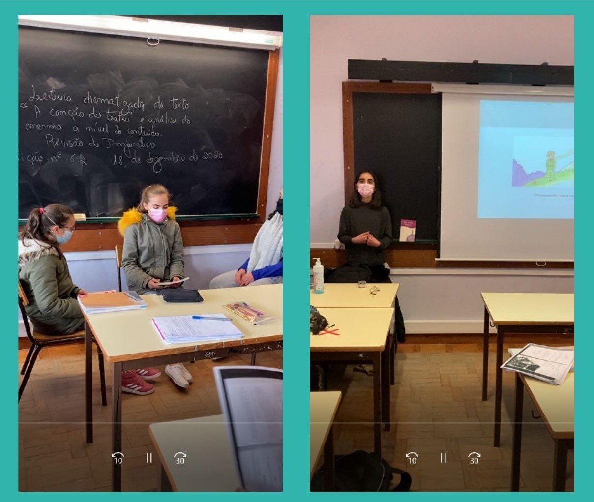 Thus, in the 3rd A class a special hour is dedicated to reading activities weekly. Out of the promoted books during the Digital Fair, 7 books were selected by students and7 reading goups were formed. The groups have met online, discussing and expressing opinions, designing posters and making drawings and role-playing. Also, maps of the books have been created, different characters have been described, recommendations of other books from the same series have been made. The results were presented to the whole class.
